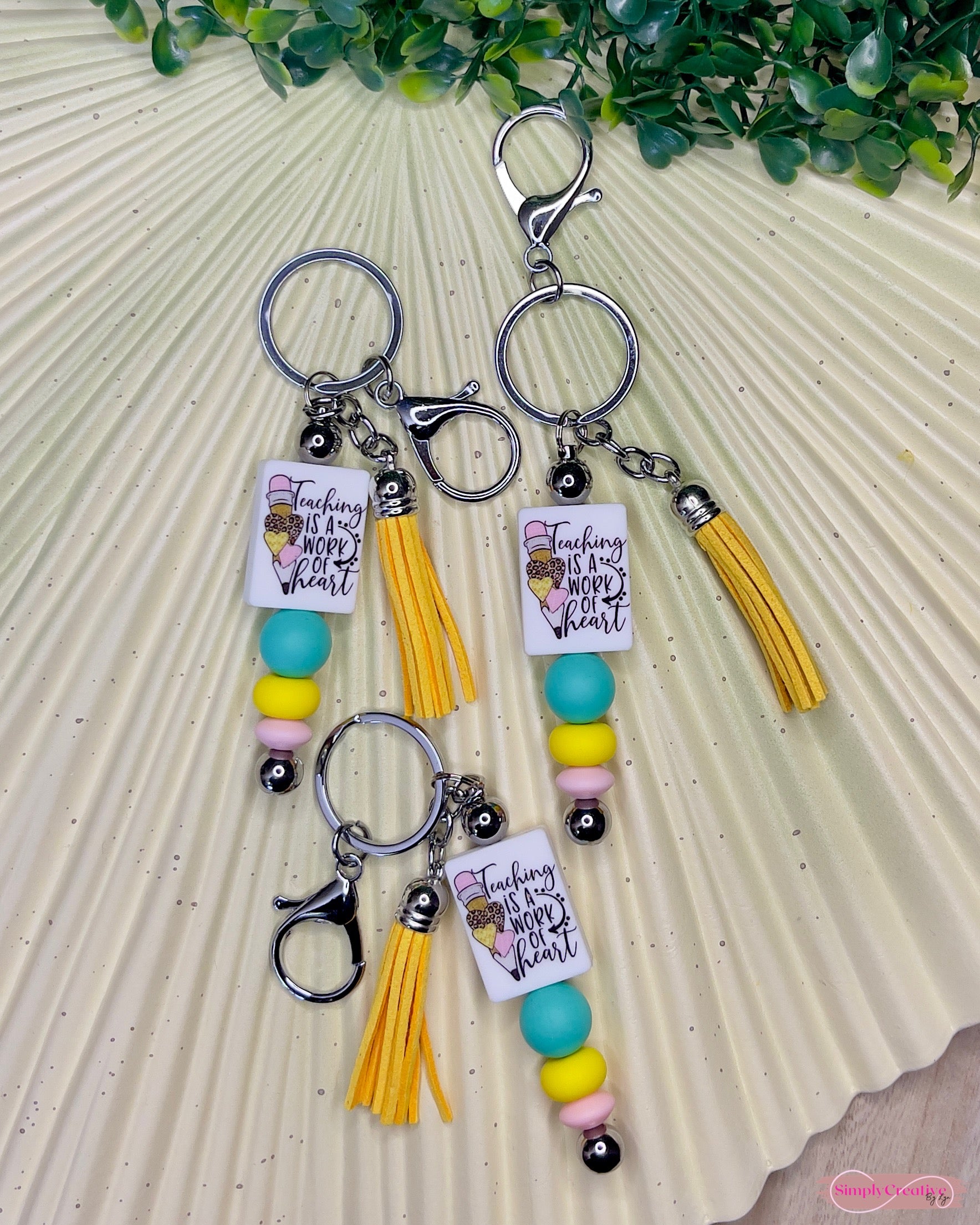 Teaching is a work of heart silicone bead in silver metal bar keychain and yellow tassel. **LIMITED QUANTITY**